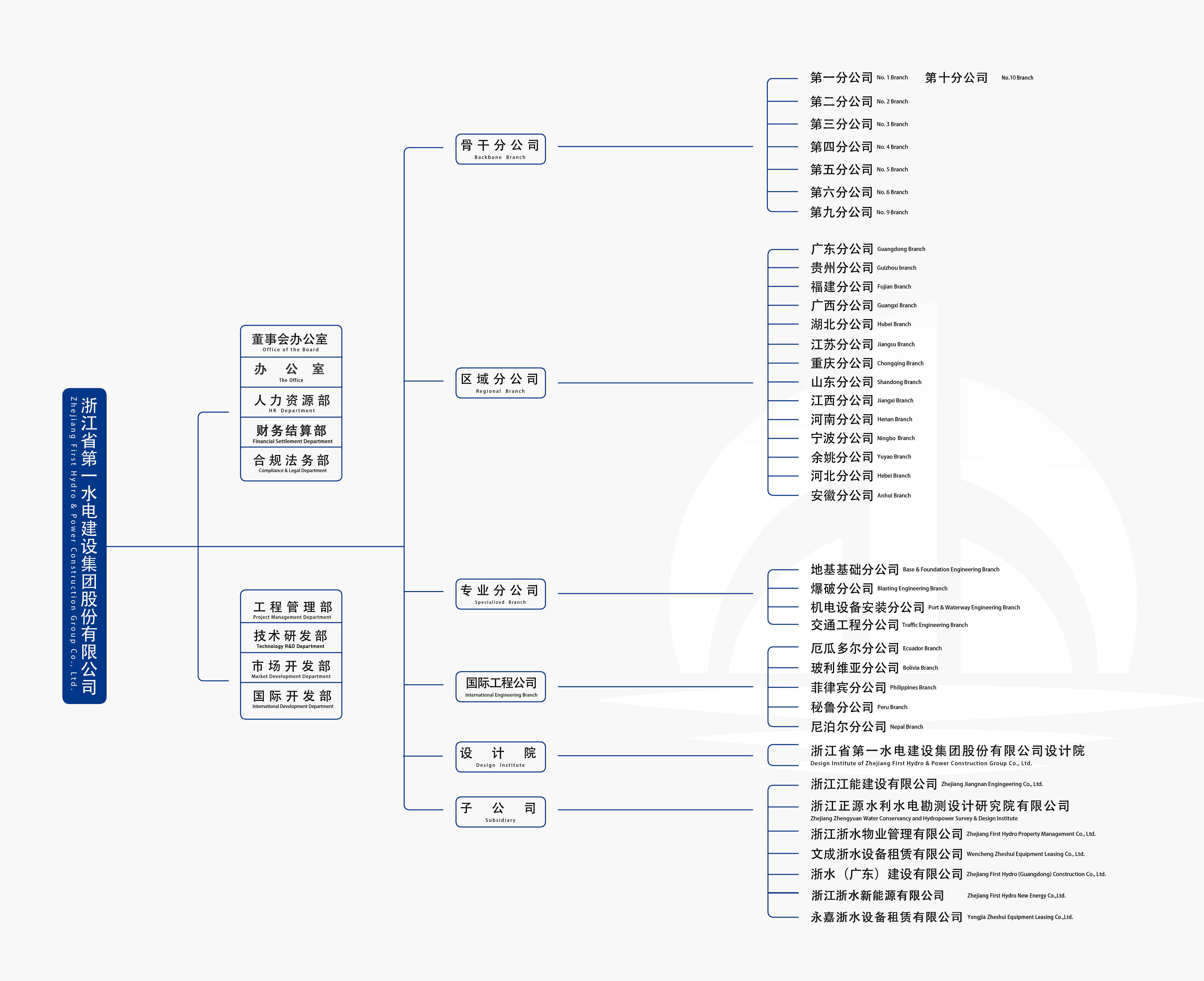 浙江省第一水電建設(shè)集團(tuán)股份有限公司,簡稱浙水股份,是一家以建筑施工為主的企業(yè)集團(tuán),成立于1965年,前身為浙江省水電建筑第一工程處。2011年11月,公司更名為浙江省第一水電建設(shè)集團(tuán)股份有限公司。2018年,公司成功通過國家高新技術(shù)企業(yè)審批,邁入國家高新技術(shù)企業(yè)行列。2020年,“浙水大廈”落成并投入使用,公司以全新的形象屹立于濱江。