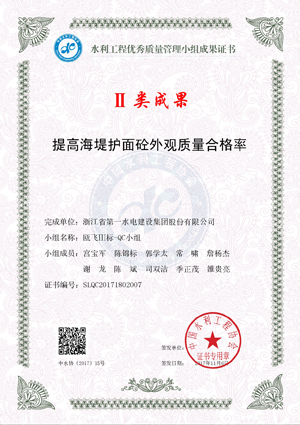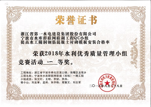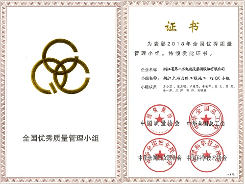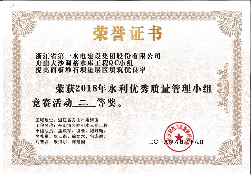 2018水利優(yōu)秀質量管理小組二等級(舟山大沙調蓄水庫工程QC小組)