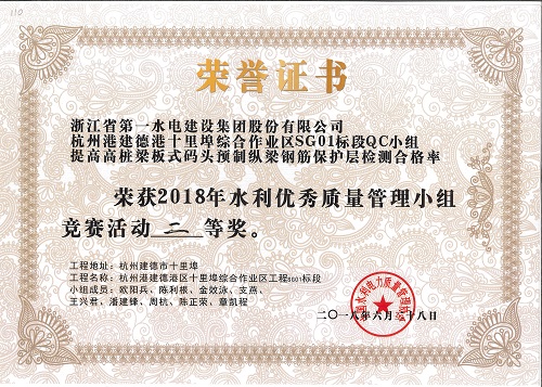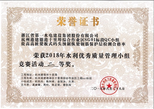 2018水利優(yōu)秀質量管理小組二等級(杭州港建德十里埠綜合作業(yè)區(qū)SG01標段QC小組)