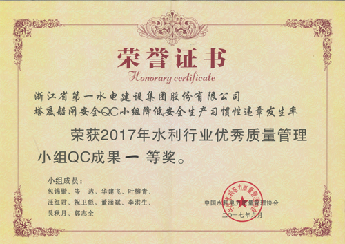 2017年 水利行業(yè)優(yōu)秀質量管理小組QC成果一等獎——降低安全生產習慣性違章發(fā)生率