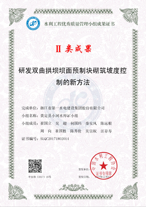 水利工程優(yōu)秀質量管理小組二類成果——研發(fā)雙曲拱壩壩面預制塊砌筑坡度控制的新方法