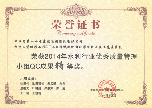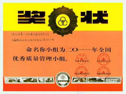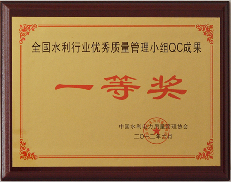 全國水利行業(yè)優(yōu)秀質(zhì)量管理小組QC成果一等獎