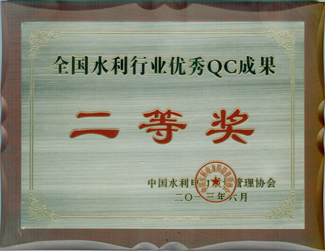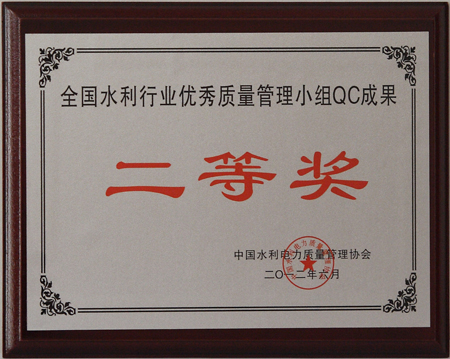 全國水利行業(yè)優(yōu)秀質(zhì)量管理小組QC成果二等獎
