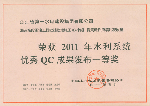 全國水利行業(yè)優(yōu)秀QC成果一等獎