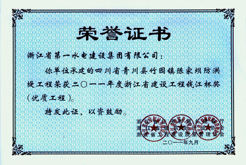 浙江省建設(shè)工程錢(qián)江杯獎(jiǎng)——四川省青川縣竹園鎮(zhèn)陳家壩防洪堤工程