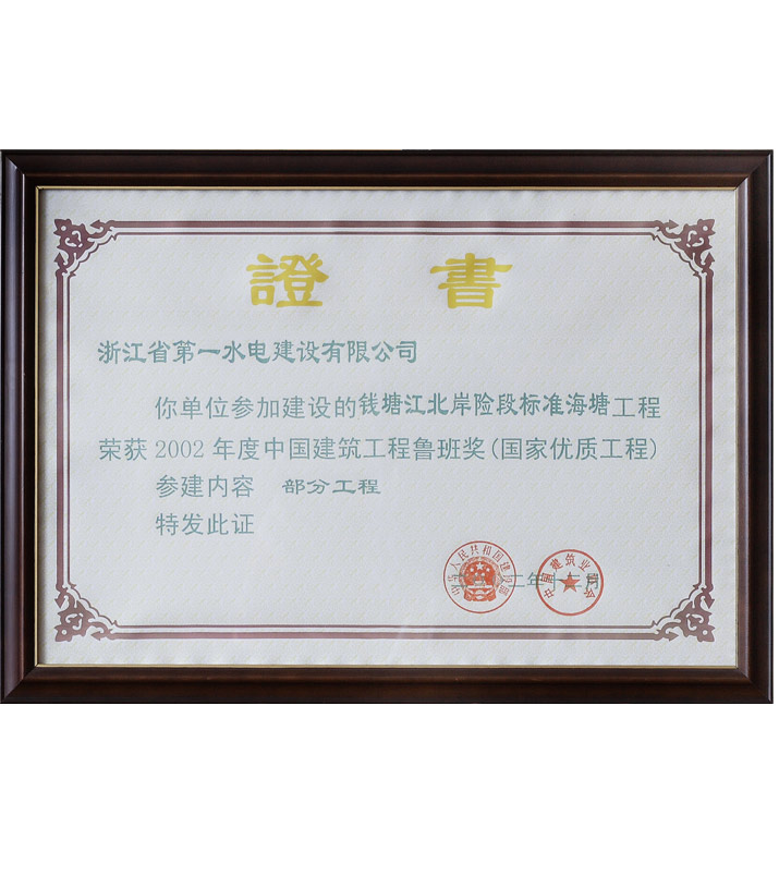 中國(guó)建筑工程魯班獎(jiǎng)(國(guó)家優(yōu)質(zhì)工程)——錢(qián)塘江北岸險(xiǎn)段標(biāo)準(zhǔn)海塘工程(2002)