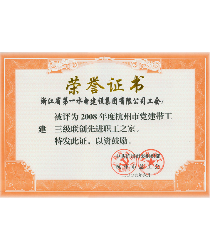 杭州市黨建帶工建,三級(jí)聯(lián)創(chuàng)先進(jìn)職工之家(2008)