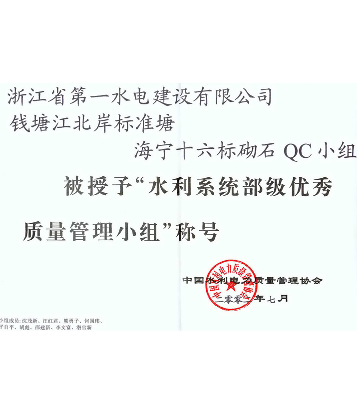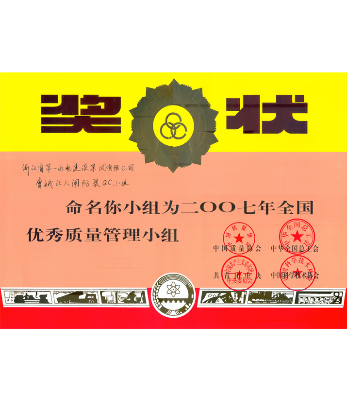 全國(guó)優(yōu)秀質(zhì)量管理小組——曹娥江大閘防裂QC小組(2007)