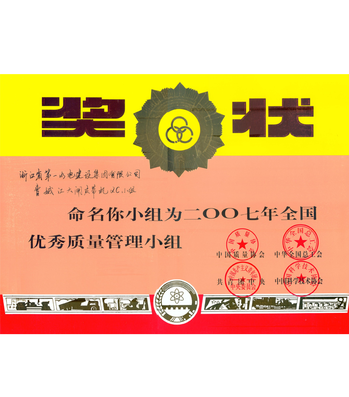 全國(guó)優(yōu)秀質(zhì)量管理小組——曹娥江大閘皮帶機(jī)QC小組(2007)