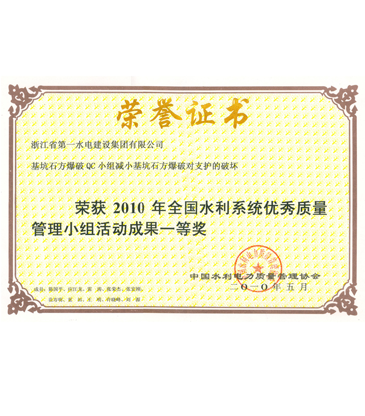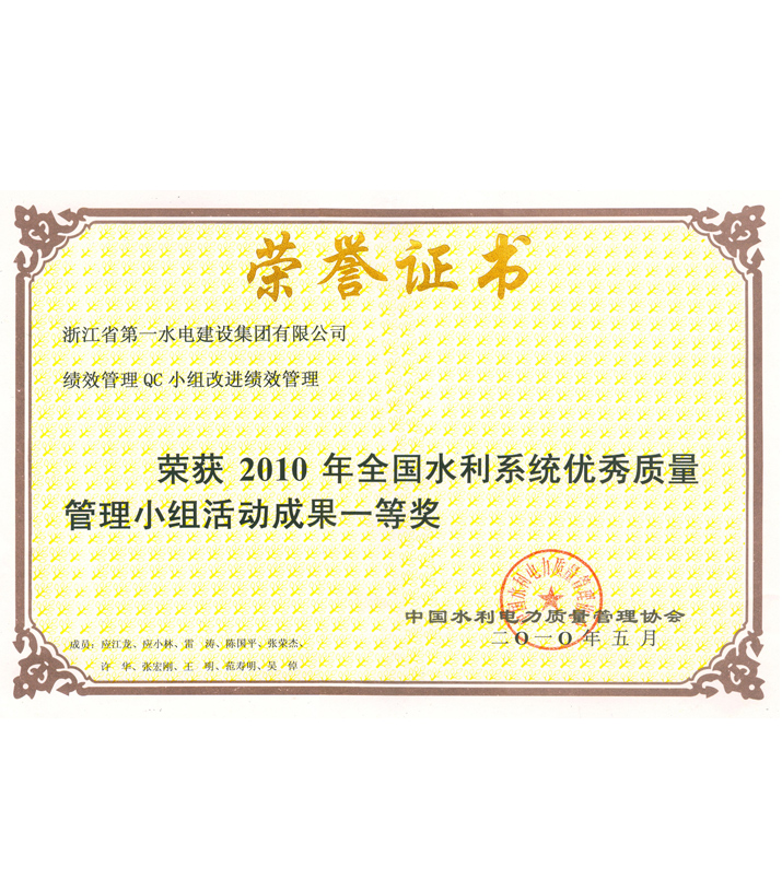 全國(guó)水利系統(tǒng)優(yōu)秀質(zhì)量管理小組活動(dòng)成果一等獎(jiǎng)——績(jī)效管理QC小組改進(jìn)