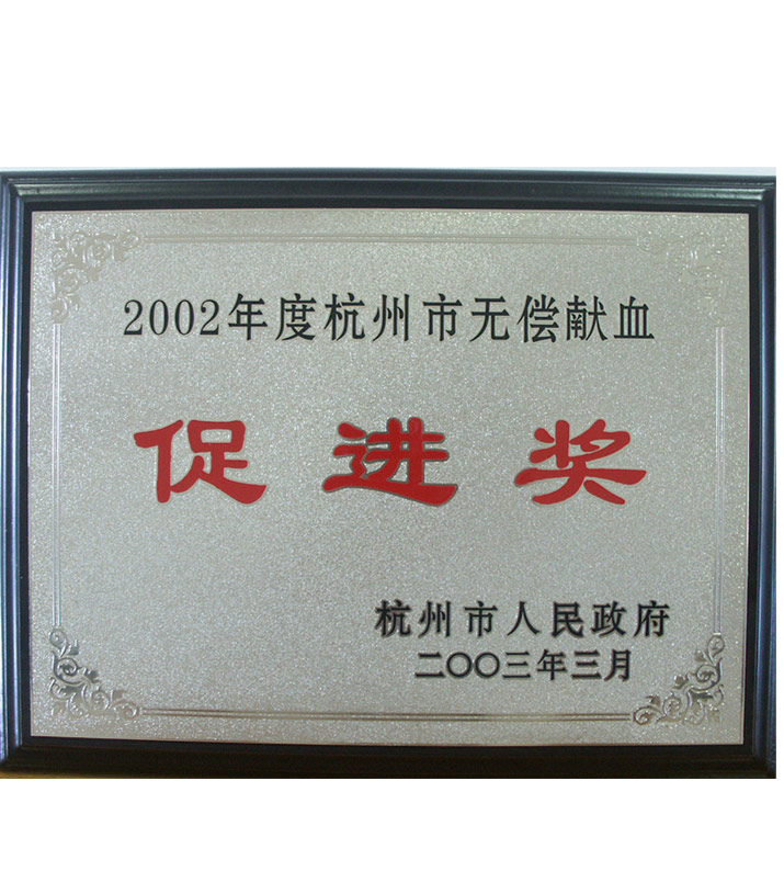杭州市無償獻(xiàn)血促進(jìn)獎(jiǎng)(2002)