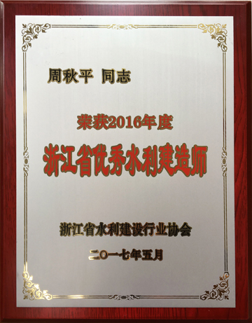 周秋平——2016年度浙江省優(yōu)秀水利建造師