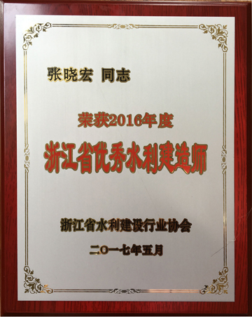 張曉宏——2016年度浙江省優(yōu)秀水利建造師