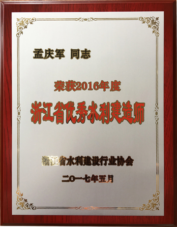 孟慶軍——2016年度浙江省優(yōu)秀水利建造師