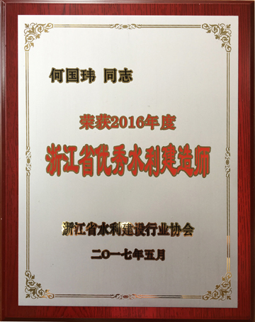 何國瑋——2016年度浙江省優(yōu)秀水利建造師