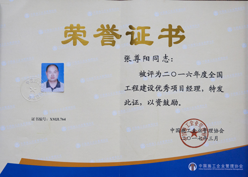 張尊陽——全國工程建設(shè)優(yōu)秀項目經(jīng)理
