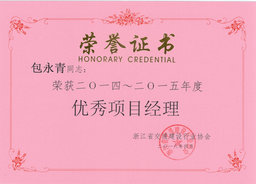 包永青——2014-2015年度優(yōu)秀項目經(jīng)理