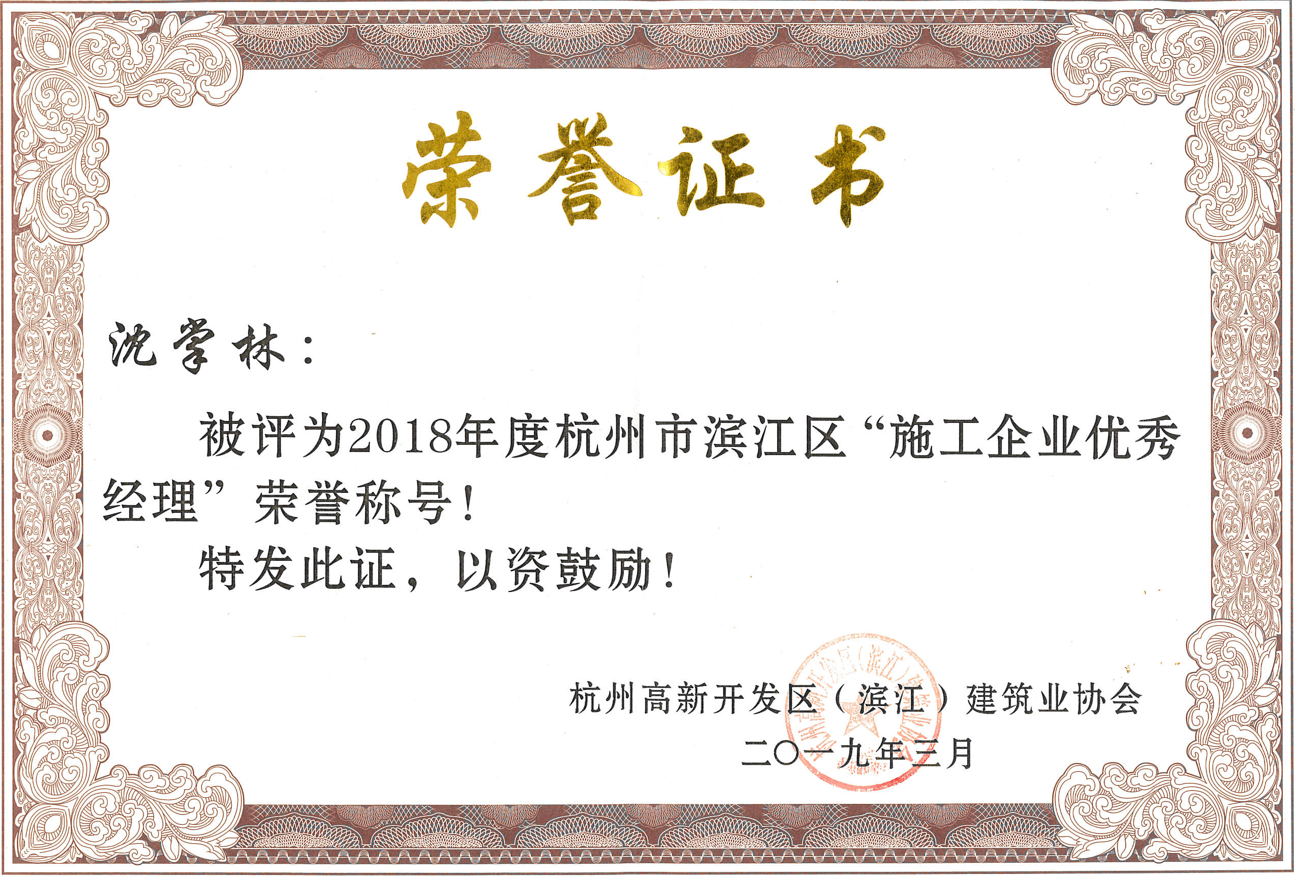 沈掌林——濱江區(qū)施工企業(yè)優(yōu)秀經(jīng)理