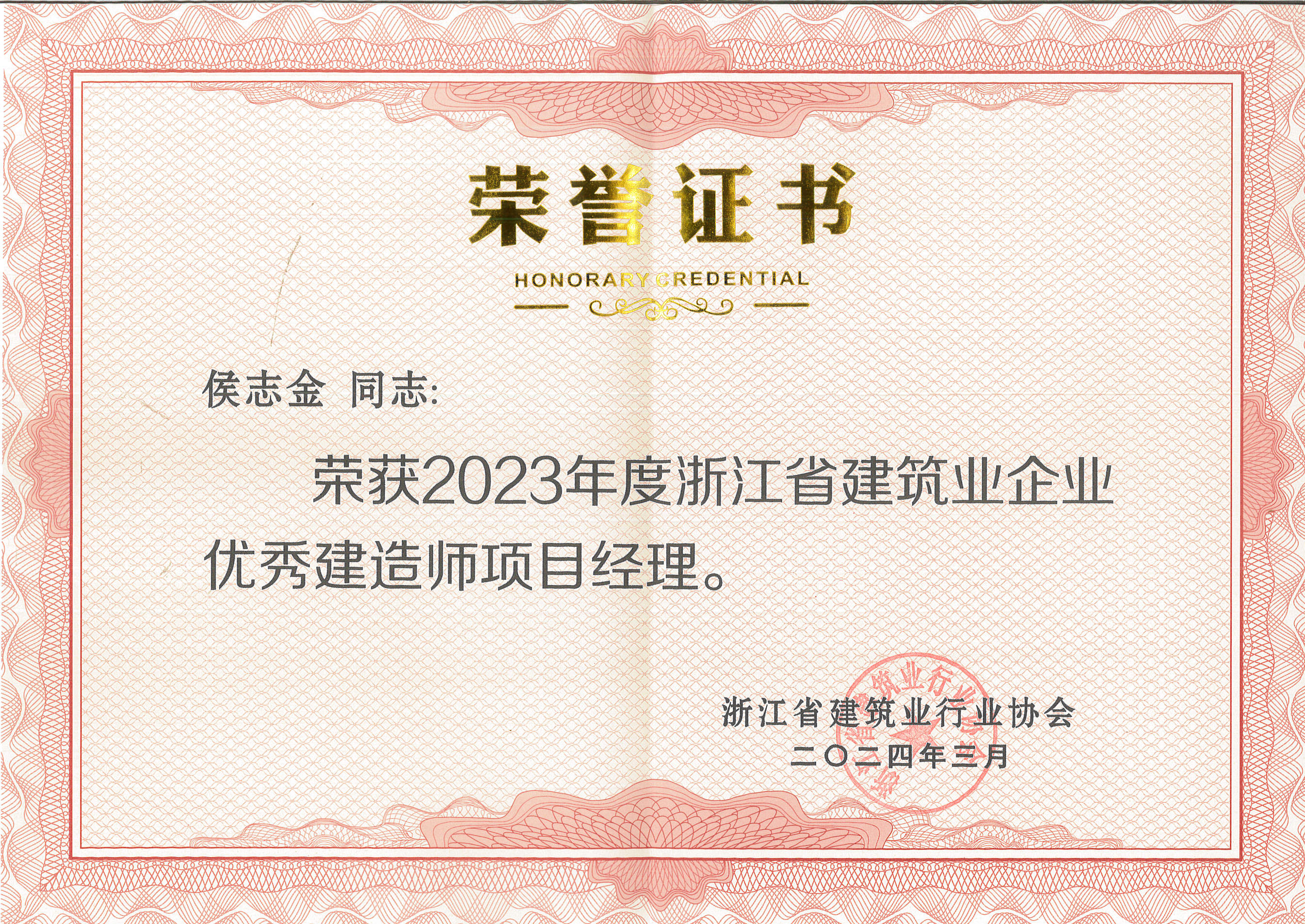 侯志金-2023年度浙江省建筑業(yè)企業(yè)優(yōu)秀建造師項目經理