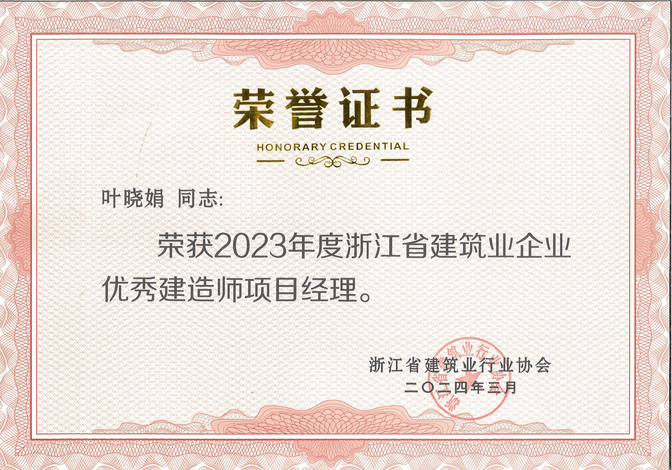 葉曉娟-2023年度浙江省建筑業(yè)企業(yè)建造師項目經理