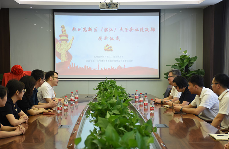 9月2日,集團公司公司黨委統(tǒng)戰(zhàn)部在浙水大廈B幢8樓會議室舉行揭牌儀式。杭州高新區(qū)(濱江)黨委統(tǒng)戰(zhàn)部副部長王連均、區(qū)物聯(lián)網(wǎng)產(chǎn)業(yè)園區(qū)發(fā)展服務中心黨委副書記邵炳輝,集團公司黨委副書記兼統(tǒng)戰(zhàn)部部長沈建揚等出席儀式。