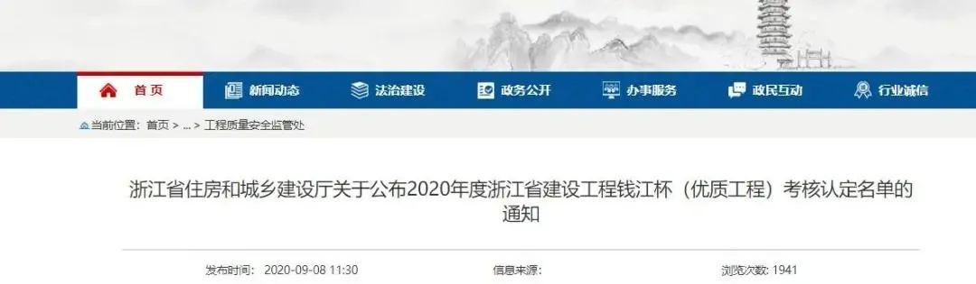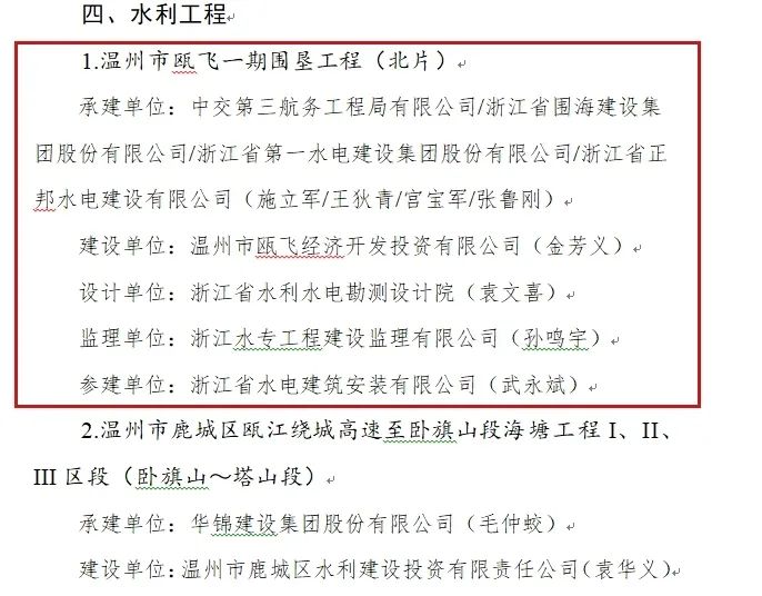 9月8日,浙江省住房和城鄉(xiāng)建設(shè)廳公布了“2020年度浙江省建設(shè)工程錢江杯(優(yōu)質(zhì)工程)考核認(rèn)定名單”,集團(tuán)公司主承建的溫州市甌飛一期圍墾工程(北片)位列其中。