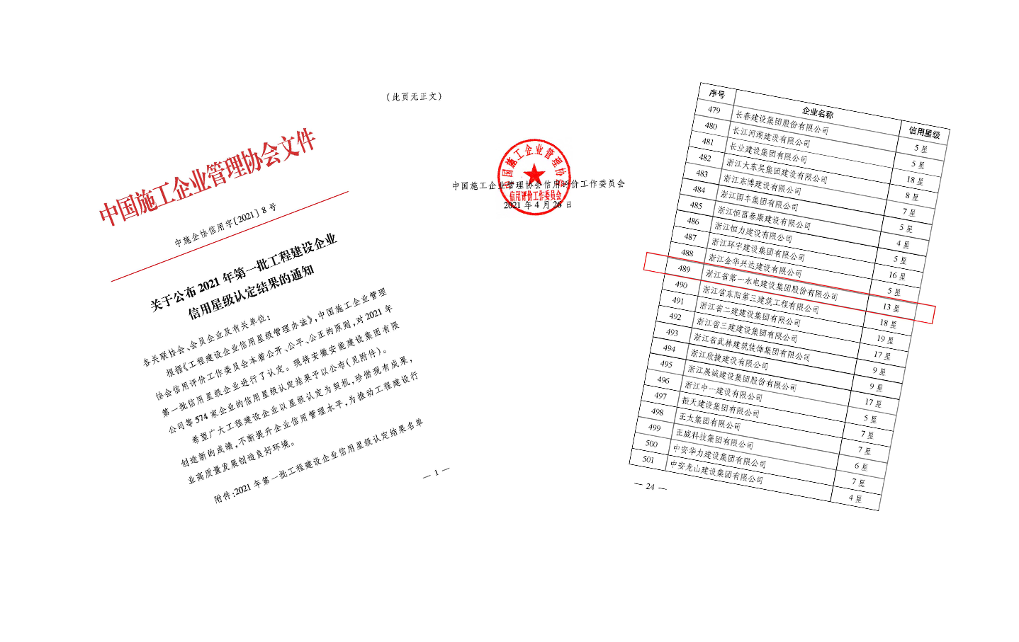 近日,中國(guó)施工企業(yè)協(xié)會(huì)公布了2021年第一批工程建設(shè)企業(yè)信用星級(jí)認(rèn)定結(jié)果,全國(guó)574家企業(yè)中,獲10星級(jí)(含)以上的計(jì)94家,集團(tuán)公司位列其中,喜獲13星。