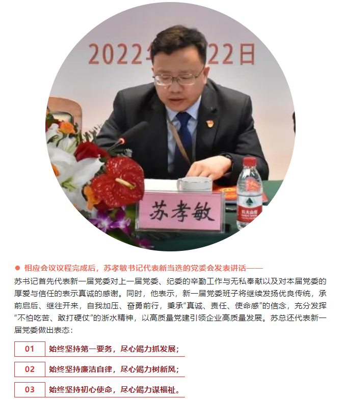 報告回顧總結了公司第七次黨代會以來五年的工作。2017年以來的五年,公司經(jīng)歷了許多大事、要事、喜事,完成了股權結構重大調(diào)整,獲得了國家高新技術企業(yè),并正式搬遷入住屬于公司自己的浙水大廈。五年來,黨委開展了隆重紀念黨的百年誕辰活動,加強黨員的思想學習教育,加強黨的思想建設和組織建設,發(fā)揮黨組織和黨員的作用,發(fā)揮黨組織的引領作用,倡導企業(yè)文化建設等活動,黨組織和廣大黨員在企業(yè)的戰(zhàn)斗堡壘作用和先鋒模范作用得到了充分的發(fā)揮,促進了企業(yè)健康穩(wěn)定發(fā)展。報告同時還對八屆黨委、紀委的工作提出了建議。