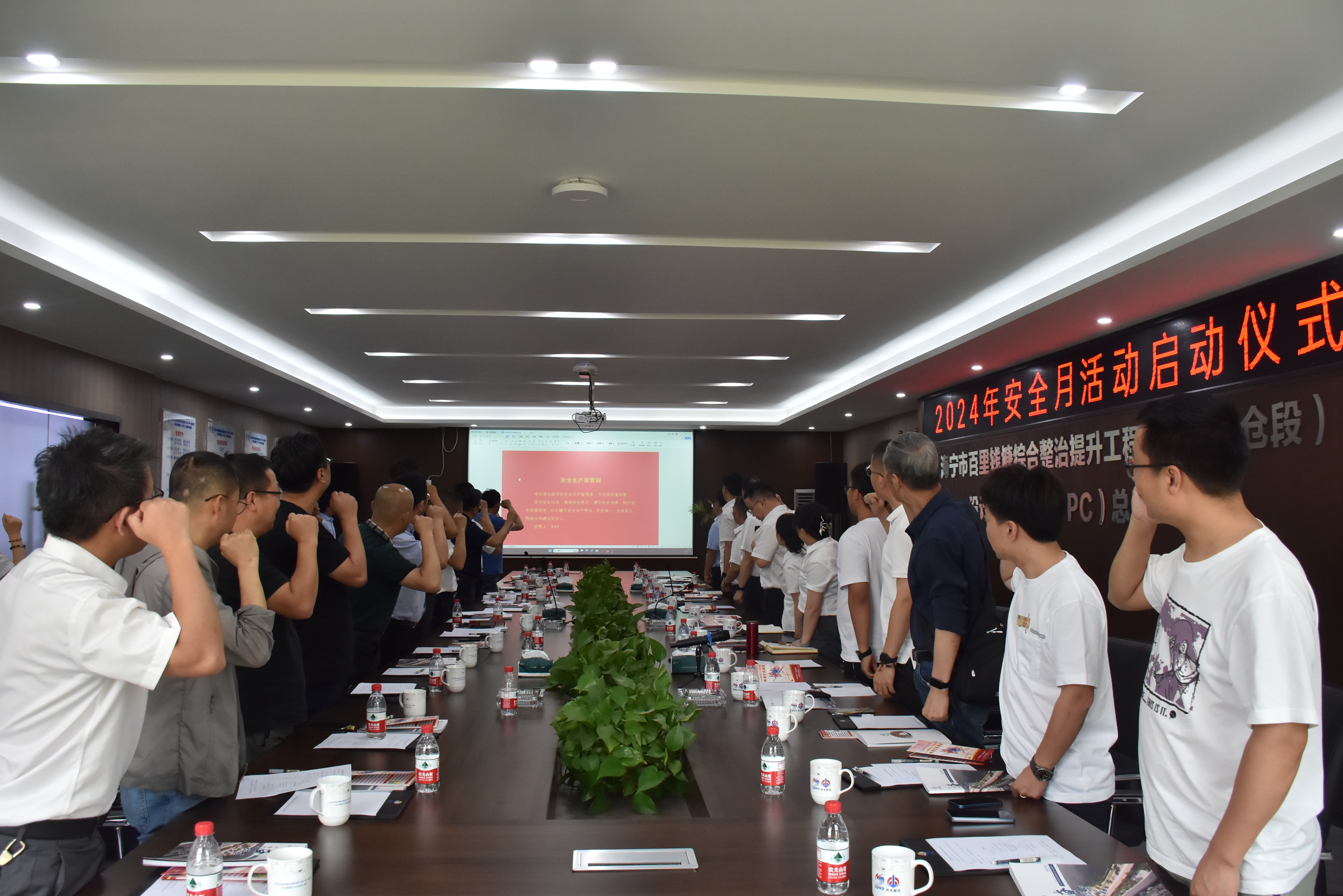 會(huì)議進(jìn)行了安全月啟動(dòng)儀式,集團(tuán)黨委書記、總經(jīng)理蘇孝敏宣布浙水股份2024年安全生產(chǎn)月活動(dòng)正式啟動(dòng),并帶領(lǐng)各級(jí)安全生產(chǎn)管理人員進(jìn)行莊嚴(yán)的安全宣誓。