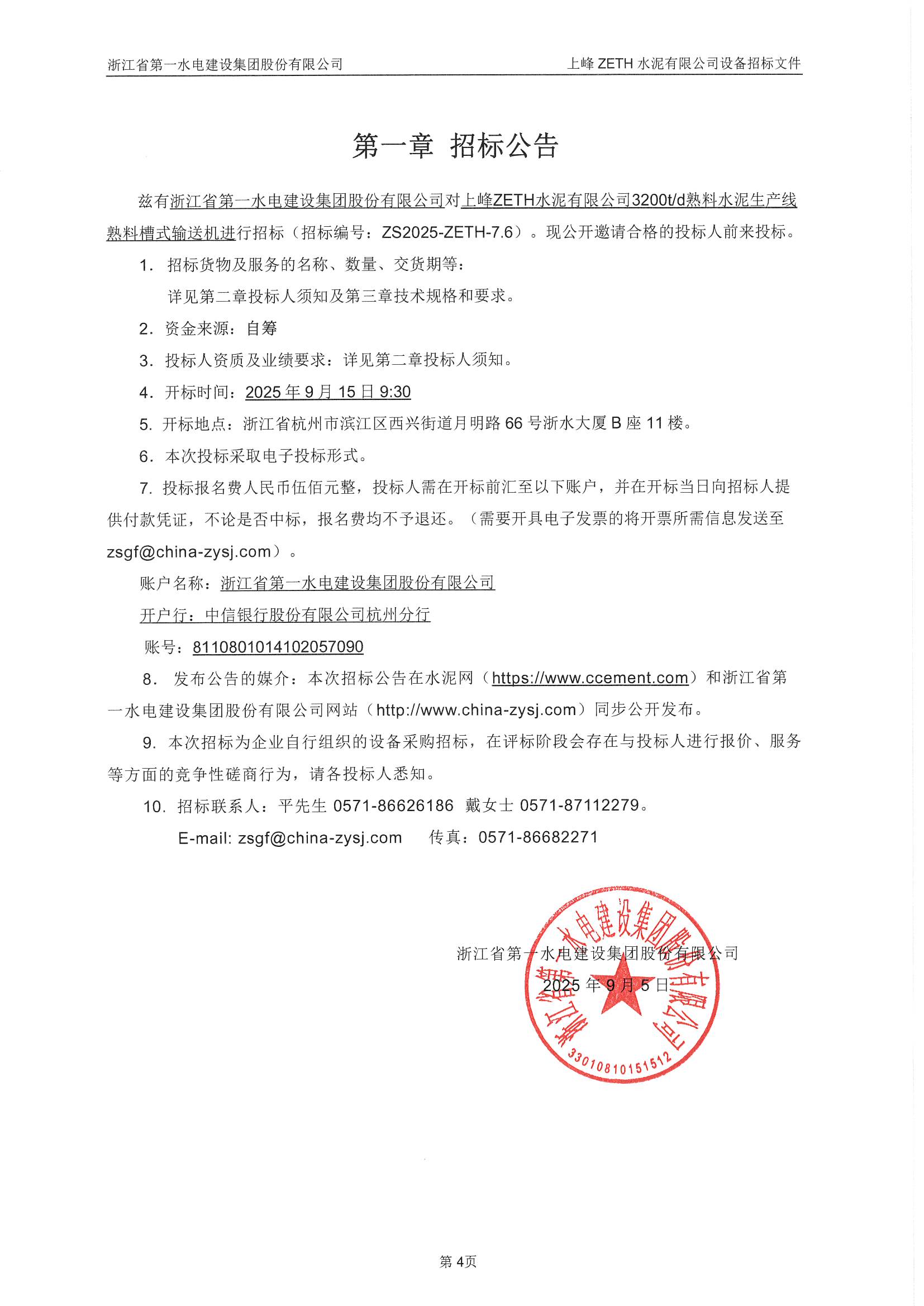 上峰ZETH水泥有限公司3200t/d熟料水泥生產(chǎn)線(xiàn)熟料槽式輸送機(jī)采購(gòu)招標(biāo)